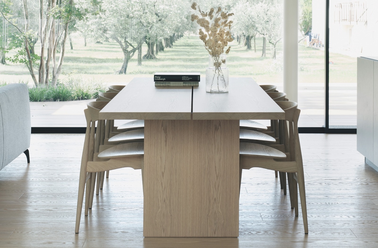 Placido e calmo, riposato da una leggera sbiancatura, il rovere rivela morbidi riflessi tra il tortora tenue e il nocciola rosato, un goloso mare di crema di latte variegato con un goccio di caffé.