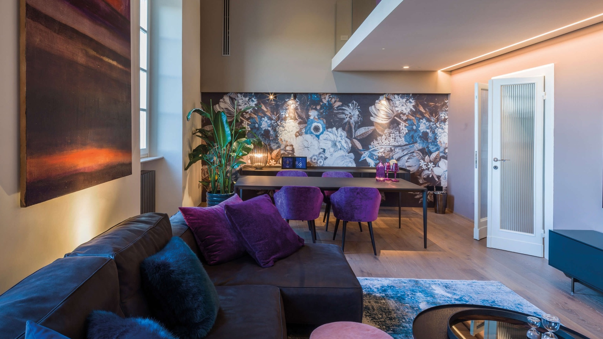 Con tutta questa natura lasciata libera di esprimere il suo potenziale e contaminata il meno possibile, la scelta di un pavimento biocompatibile Fiemme Tremila è sembrata essere la più coerente, soprattutto per la possibilità di posarlo flottante e quindi appoggiando semplicemente le tavole sul piano di posa, senza utilizzo di colle e altri materiali potenzialmente nocivi. Anche la scelta di uno dei roveri più discreti ed eleganti della collezione Boschi di Fiemme, Riflesso, è in linea con l’intero progetto. Riflesso è posato in tutta la villa e si interseca e amalgama con gli altri materiali ricevendo e donando in un climax ascendente di luce e natura.